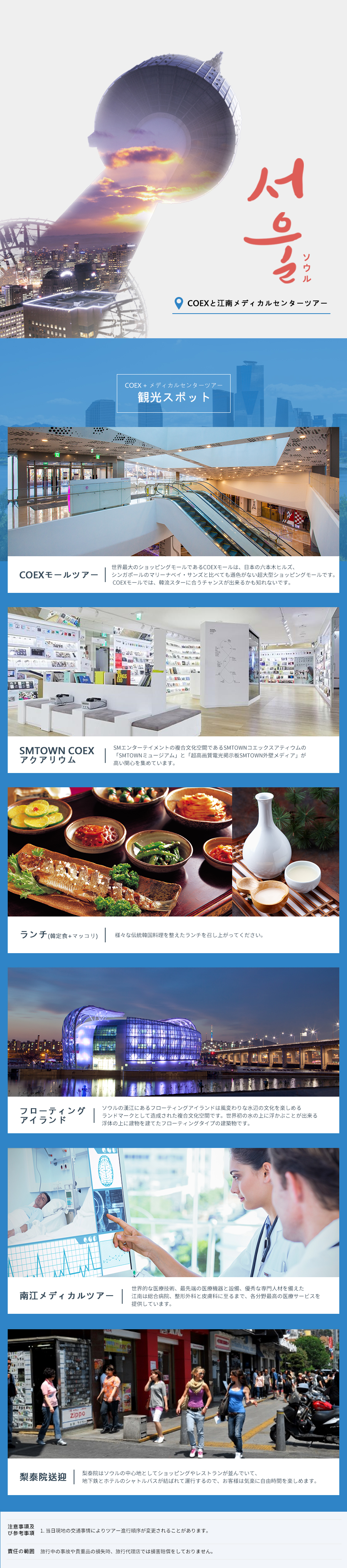 ホテルピックアップ - COEXモールツアー - SM COEXアーティウム - 韓定食ランチ - フローティングアイランド・ツアー - 江南メディカルツアー - イテウォンへ送迎